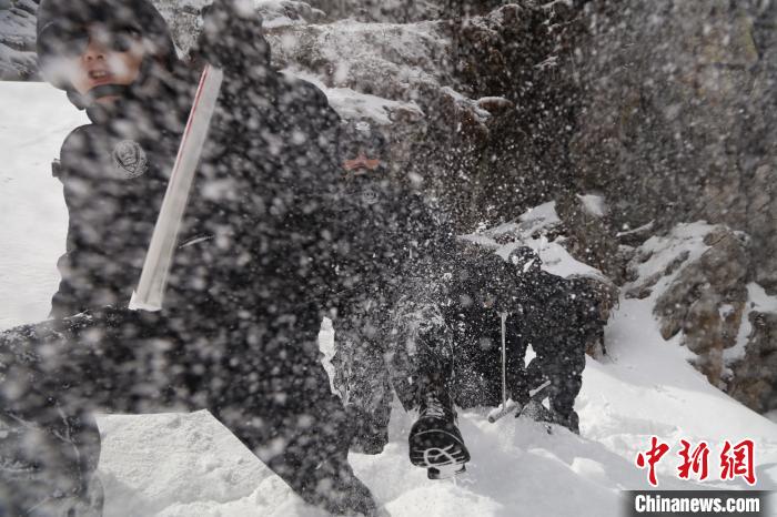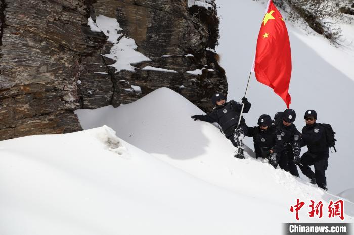 民警們一路趟冰河、翻雪山,向目標(biāo)點(diǎn)位艱難前行。隨著海拔升高,含氧量降低,即使是西藏本地人,初上乃堆拉的阿旺邊巴也開(kāi)始?xì)獯跤酢?/p>