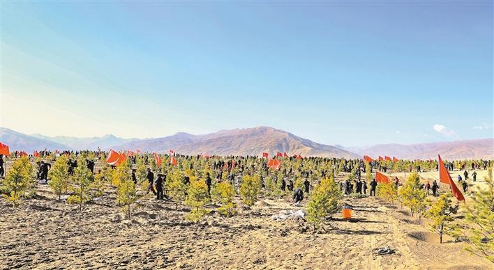 圖為山南市瓊結(jié)縣干部群眾開(kāi)展植樹(shù)造林活動(dòng)。