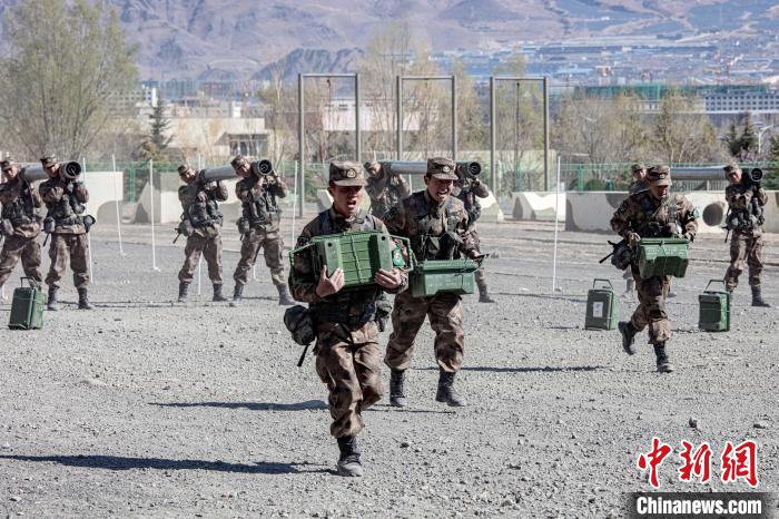 圖為西藏軍區(qū)某旅新兵們進(jìn)行戰(zhàn)場搬運(yùn)考核。