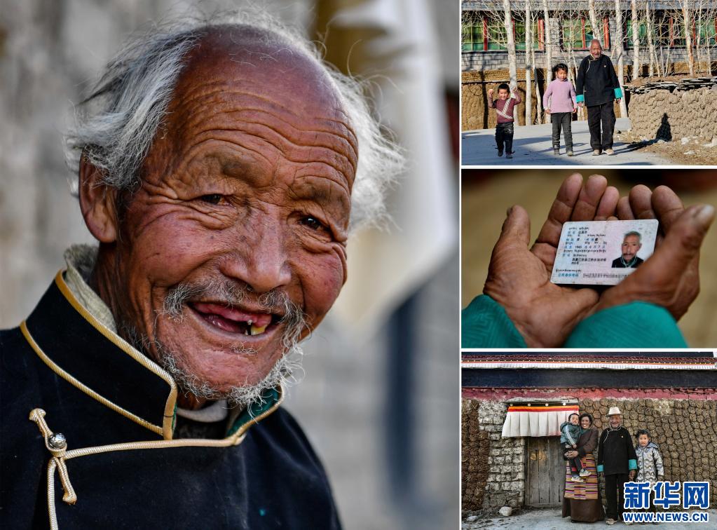 這是一張拼版照片,左圖為達(dá)國(guó)杰的肖像(3月22日新華社記者張汝鋒攝);右上圖為達(dá)國(guó)杰和孫子孫女在村子里散步(3月22日新華社記者張汝鋒攝);右中圖為達(dá)國(guó)杰的身份證(3月22日新華社記者張汝鋒攝);右下圖為達(dá)國(guó)杰和家人在家門(mén)前合影留念(3月22日新華社記者孫瑞博攝)。新華社發(fā)