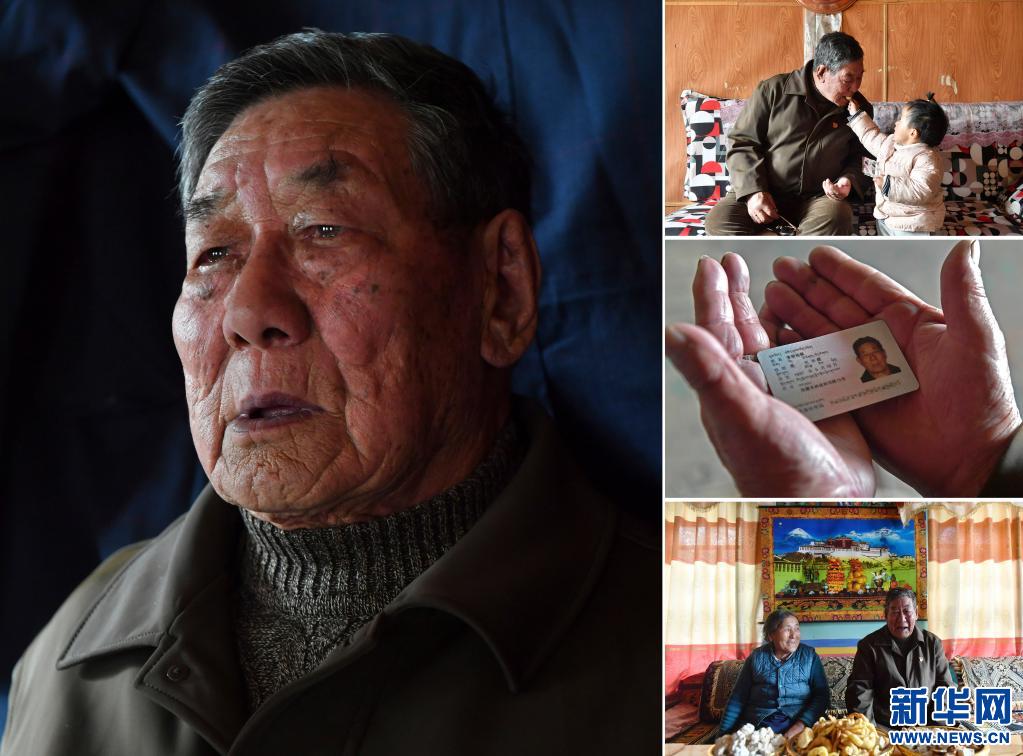 這是一張拼版照片,左圖為多扎木的肖像(3月20日新華社記者張汝鋒攝);右上圖為多扎木和兒子準(zhǔn)備坐車(chē)外出(3月20日新華社記者孫瑞博攝);右中圖為多扎木老人的身份證(3月20日新華社記者孫瑞博攝);右下圖為多扎木(中)和兒子、兒媳在家中(3月20日新華社記者張汝鋒攝)。新華社發(fā)