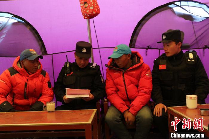 圖為民警了解登山隊(duì)人員信息情況。珠峰邊境派出所供圖