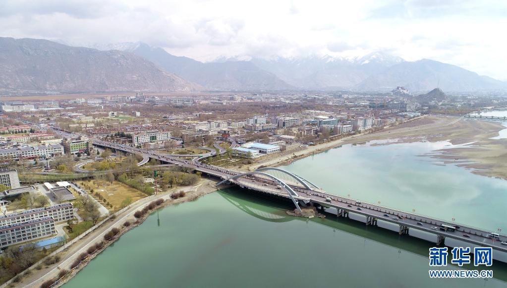 這是橫跨在拉薩河上的拉薩市區(qū)公路(2019年4月3日攝,無(wú)人機(jī)照片)。新華社記者 晉美多吉 攝
