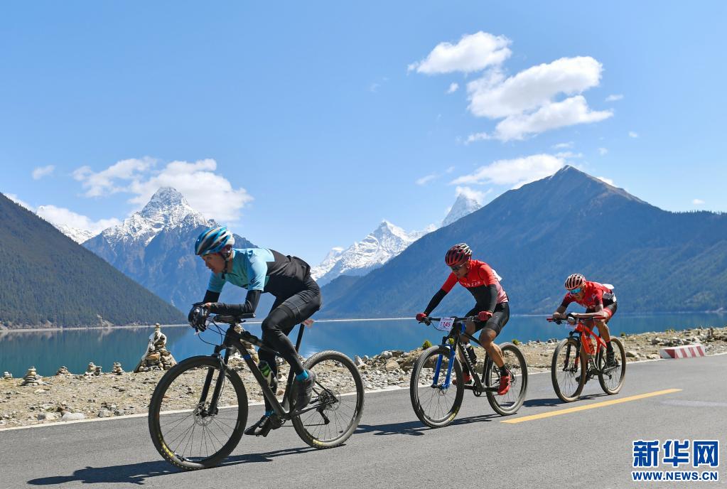 第8屆環(huán)巴松措國際山地自行車越野競速賽1日在位于西藏自治區(qū)林芝市的國家5A級景區(qū)巴松措國家森林公園內(nèi)鳴槍開賽。賽道平均海拔超3600米,是目前國內(nèi)海拔最高的環(huán)湖自行車賽。