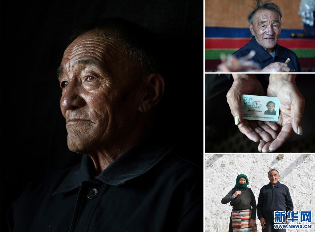 左圖:拉薩市當(dāng)雄縣寧中鄉(xiāng)麥靈村次仁老人的肖像(4月16日新華社記者孫瑞博攝)。