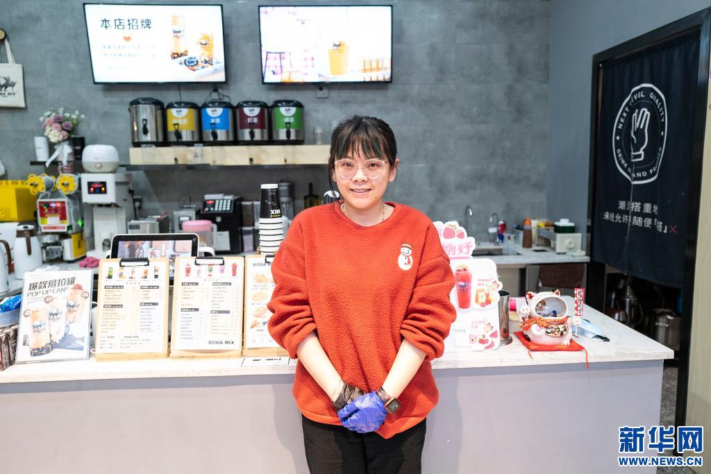 澳門(mén)姑娘邵穎怡站在自己位于拉薩的奶茶店里(5月6日攝)。新華社記者 孫瑞博 攝