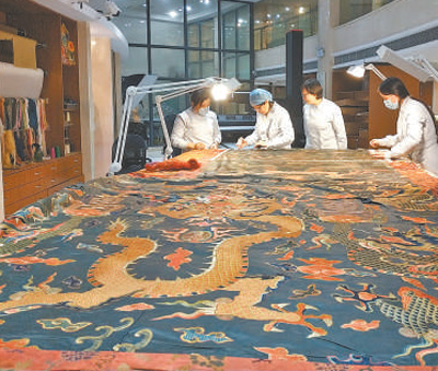 2020年9月,西藏自治區(qū)文物局組織專家對(duì)中國(guó)絲綢博物館所承擔(dān)的紡織品文物保護(hù)修復(fù)項(xiàng)目進(jìn)行了驗(yàn)收。至此,以樓淑琦為首的中國(guó)絲綢博物館技術(shù)部克服了重重困難,付出了艱辛的努力,圓滿完成了“十三五”期間所有援藏項(xiàng)目。絲絲縷縷的修復(fù)過(guò)程,是充滿智慧的技藝薪火相傳的過(guò)程,考驗(yàn)了修復(fù)保護(hù)人員的功力、體力和耐力,更傳遞出對(duì)文物的敬意。