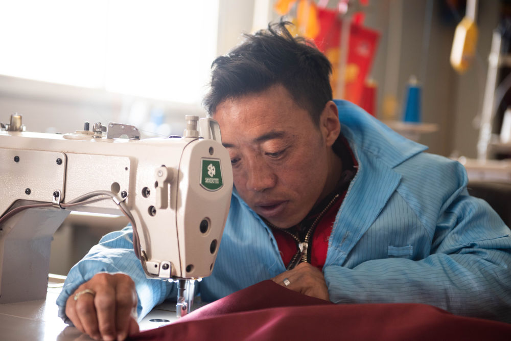 平措占堆剛出生便被診斷患有小兒麻痹癥,對(duì)于平凡的家庭來(lái)說(shuō),這無(wú)疑是一個(gè)打擊?!暗悄赣H是一個(gè)堅(jiān)強(qiáng)的人,將我和弟弟撫養(yǎng)成人,在我23歲那年,母親把我?guī)У搅诉@里,學(xué)習(xí)縫紉技術(shù)?!?/p>