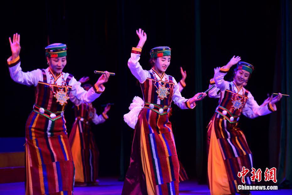 6月12日,2021年“文化和自然遺產日”西藏非遺展演展示系列活動在拉薩舉行?;顒蝇F場融入了文藝演出、非遺展演、非遺產品展銷等內容,市民游客可親身體驗非遺產品的制作過程。圖為在西藏自治區(qū)群眾藝術館演出的扎念彈唱《普伊桑林貢巴》?!?中新社記者 貢嘎來松 攝