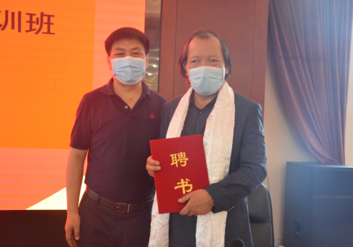 北京藏醫(yī)院院長(zhǎng)仲格嘉(左)向明珠(右)頒發(fā)聘書(shū),聘請(qǐng)明珠為北京藏醫(yī)院藏藥浴專(zhuān)題培訓(xùn)班授課老師。