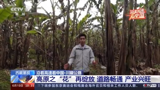 總臺記者 孟湛東:我現(xiàn)在是在扎墨公路沿線的一片香蕉林,墨脫地區(qū)的氣候條件跟西藏其他地方相比有很大的不同。在公路沿線,經(jīng)??梢钥吹较窀收帷幟?、香蕉等等這樣的熱帶經(jīng)濟(jì)作物。近幾年,扎墨公路貫通了之后,很多游客會駕車,通過公路進(jìn)入到墨脫旅游,所以在沿線就會有很多的蕉農(nóng)砍下自己的香蕉,拿到路邊進(jìn)行銷售。