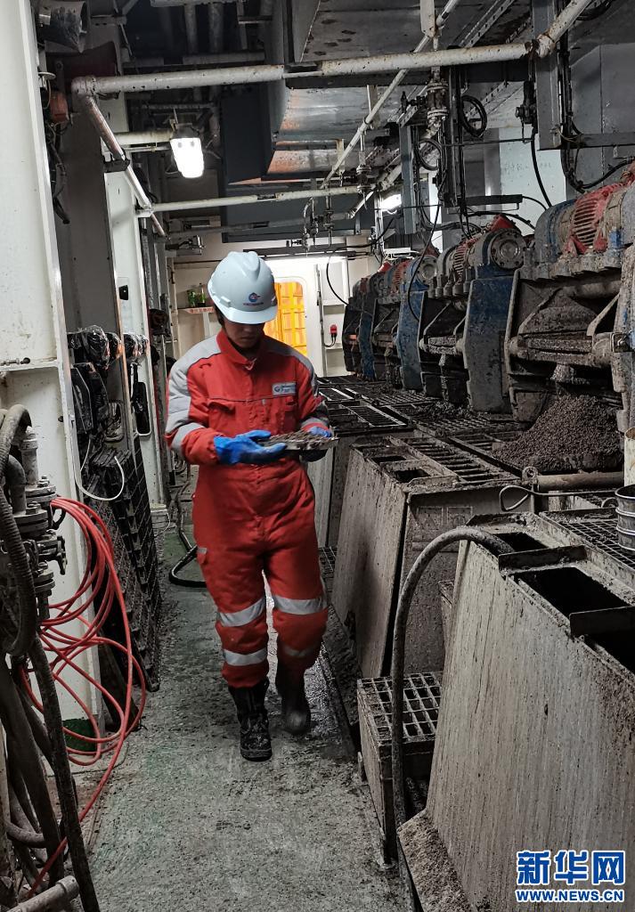 中國海油員工羅松巴登正在采集底層巖石樣本。(受訪者供圖)