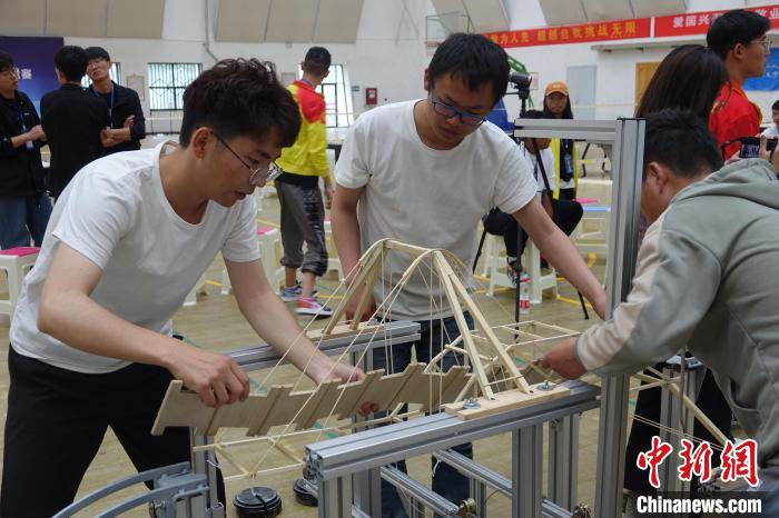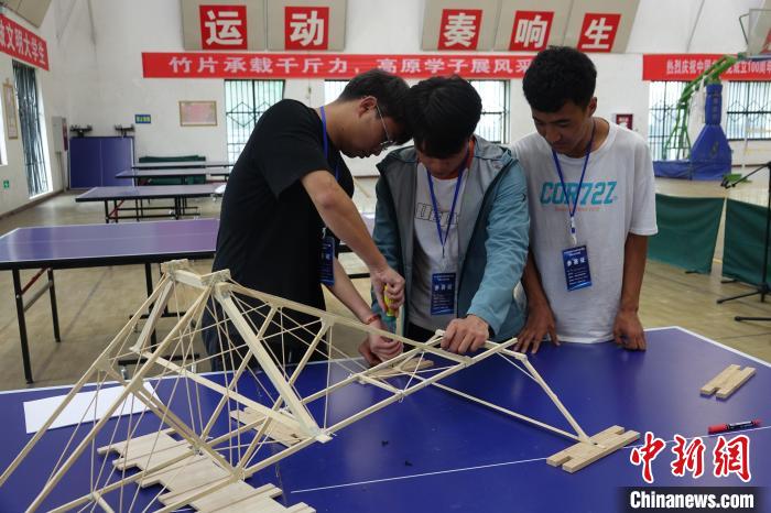 圖為第三屆西藏大學生結(jié)構(gòu)設(shè)計競賽比賽現(xiàn)場。冉文娟 攝