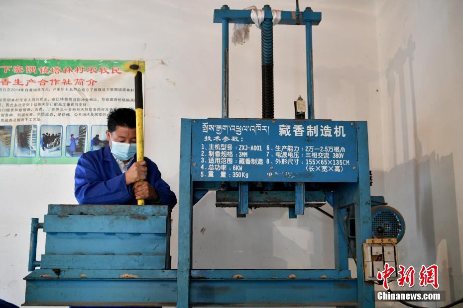 7月22日,西藏自治區(qū)林芝市察隅縣塔林村“察隅旺扎藏香”生產合作社的工人整理藏香貨架。2014年,“察隅旺扎藏香”生產合作社成立,生產主要由白檀香和紫檀香、沉香、丁香等30多種純天然珍貴藥材及香料制成的藏香,目前年收益可達十余萬元人民幣。合作社不僅帶動了當地人員就業(yè),也推動藏香經濟進一步發(fā)展,促進農牧民增收。 中新社記者 李嘉嫻 攝