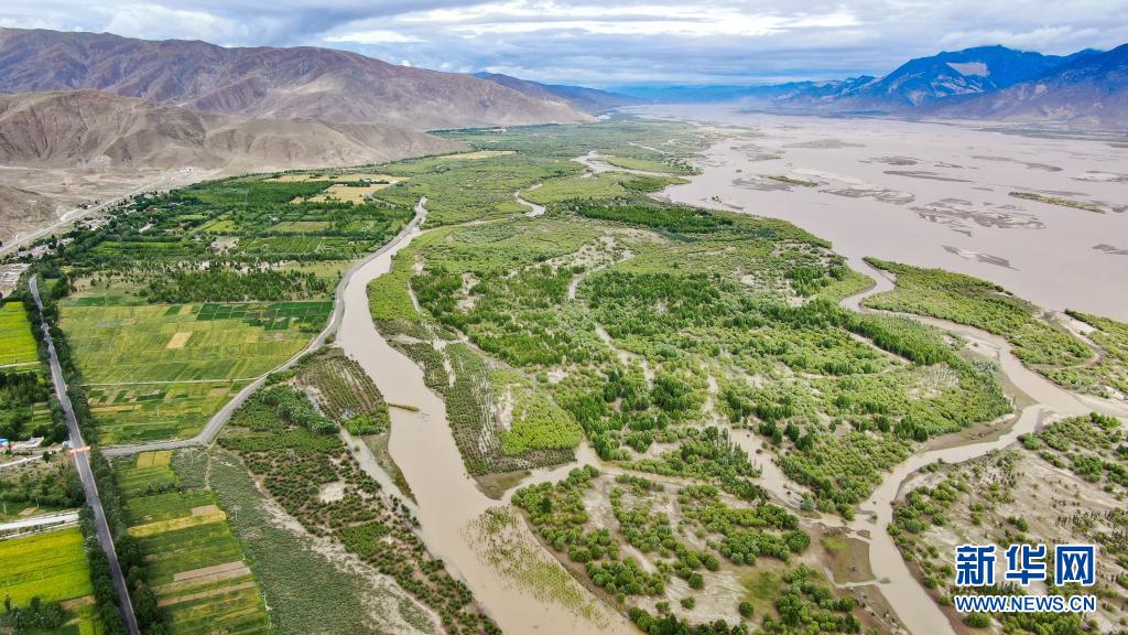雅魯藏布江山南段公路兩旁的綠色長(zhǎng)廊(7月20日攝,無(wú)人機(jī)照片)。新華社記者 晉美多吉 攝