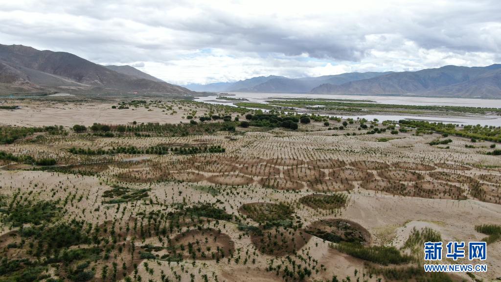 雅魯藏布江山南段沙丘上,當(dāng)?shù)厝罕娫谶M(jìn)行人工造林(7月20日攝)。新華社記者 晉美多吉 攝