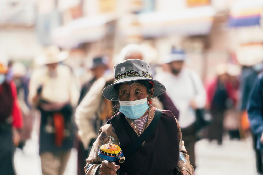 手搖轉(zhuǎn)經(jīng)筒的藏族人