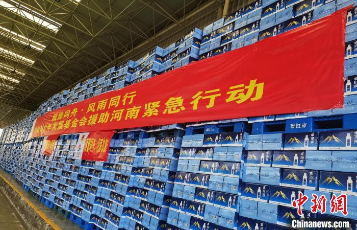 圖為為河南募捐的抗汛救災物資 普珍 攝