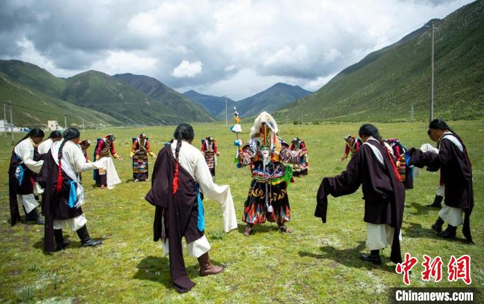 草原上正在展示直孔普堆巴宣舞。劉忠俊 攝