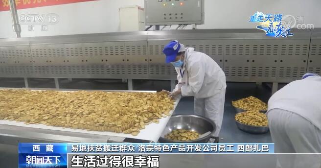 易地扶貧搬遷群眾 洛宗特色產(chǎn)品開發(fā)公司員工 四郎扎巴:我這個車間主要負責洗青稞、青稞剝皮,我妻子在泡菜車間工作,她每月2400元,我們倆加起來一年也有6萬多(元)收入,以前一年收入不到1萬(元),搬過來以后在這邊實現(xiàn)就業(yè),收入各方面都很穩(wěn)定,生活過得很幸福。