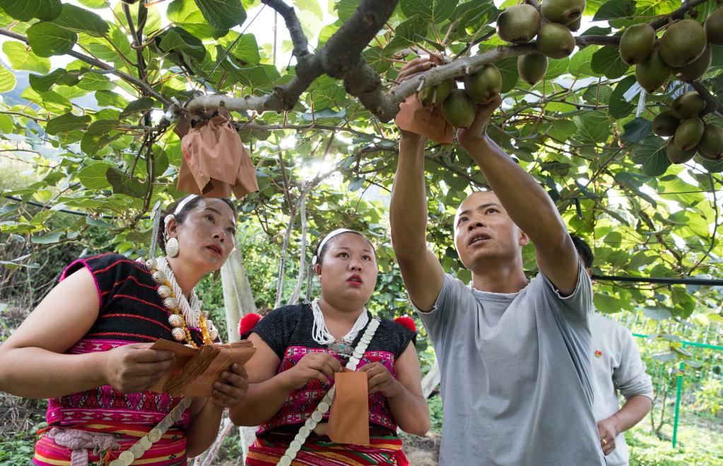 林芝市察隅縣與印度和緬甸毗鄰。走進(jìn)下察隅鎮(zhèn)僜人新村,綠油油的獼猴桃田掩映著一座座新居。