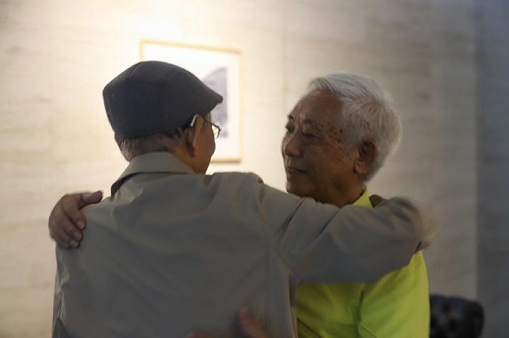 其加達(dá)瓦與梁世雄(背影者)時隔56年再次重逢(2021年6月2日)。新華社記者胡拿云攝