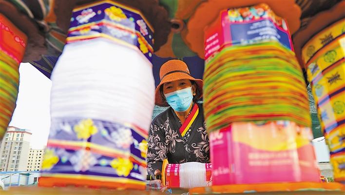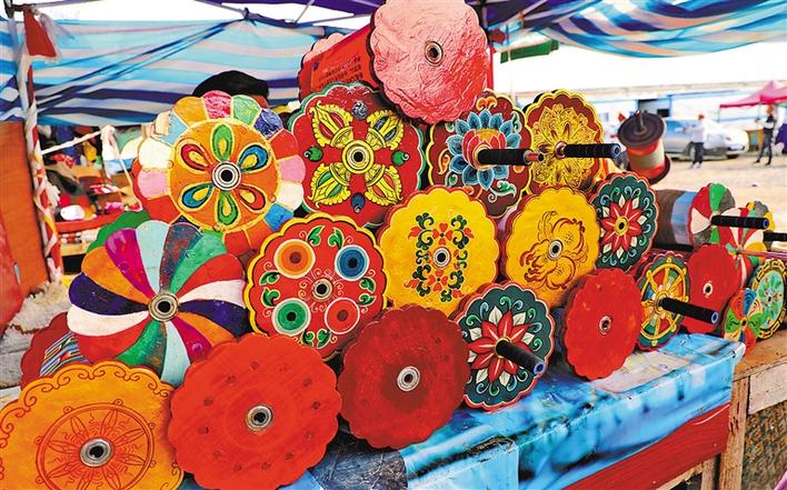 在拉薩河谷售賣風箏的攤位中,拉薩風箏制作技藝自治區(qū)級代表性傳承人普窮的生意最紅火,經(jīng)常有客人一買就是幾十只風箏。
