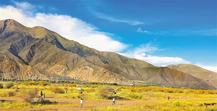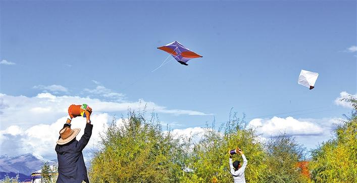 每年金秋時節(jié),在拉薩城的上空,便會出現(xiàn)千百只風箏漫天飛舞、爭奇斗艷的景觀。在碧藍的天空下,那些形狀各異、如鷹似燕的風箏,時而高飛、時而低落、時而旋轉(zhuǎn)、時而打斗,一旁觀戰(zhàn)或正在放風箏的人仰頭觀看,歡呼聲、嘆息聲、助威聲此起彼伏,很是熱鬧。
