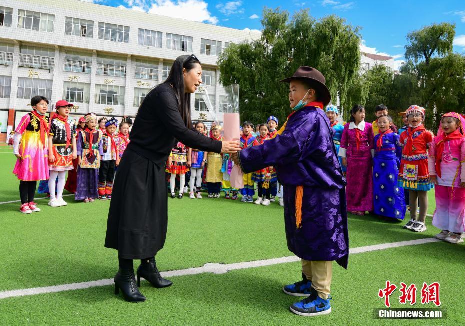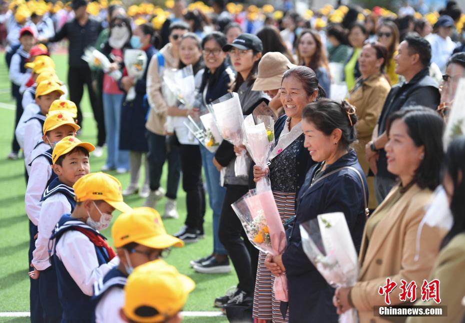 9月10日是第37個教師節(jié),西藏拉薩市第一小學(xué)舉行了以“譜團結(jié)新篇 育桃李芬芳 感教師恩情”為主題的慶?;顒印W(xué)生以敬禮、獻花、擁抱等方式,表達對老師的感恩之情。中新社記者 貢嘎來松 攝