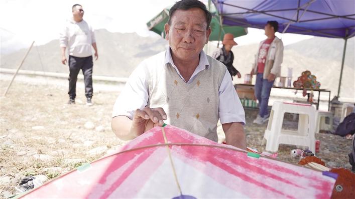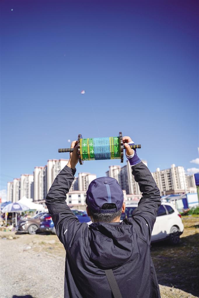 近日,記者來到位于江蘇實驗中學附近的拉薩河畔,這里聚集著不少賣風箏的小攤,旁邊也有很多放風箏的人。風箏在拉薩稱為“洽皮”,而在日喀則被稱為“秀洽”。西藏風箏最大的特色在于“斗風箏”,勝負取決于風箏絞線的質(zhì)量和風箏愛好者的放飛技巧。