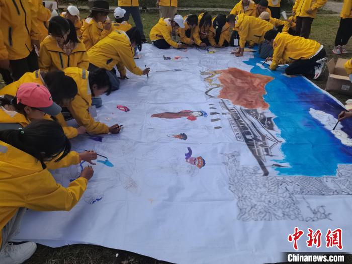 圖為學生們共繪一幅“中華民族一家親”?!∥鞑厍嗌倌陮嵺`教育基地供圖