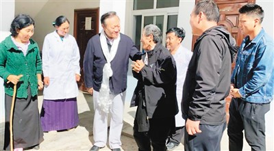 2020年9月,中國留學(xué)人才發(fā)展基金會理事長曹衛(wèi)洲(左三)帶隊前往洛隆縣,調(diào)研存量大骨節(jié)病患者,并了解已完成手術(shù)患者的恢復(fù)情況。