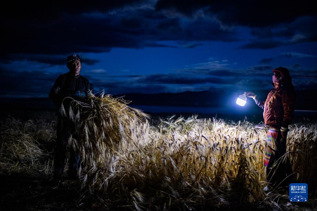 9月23日清晨,西藏那曲市尼瑪縣文部鄉(xiāng)文部南村村民開鐮收割。新華社記者 普布扎西 攝
