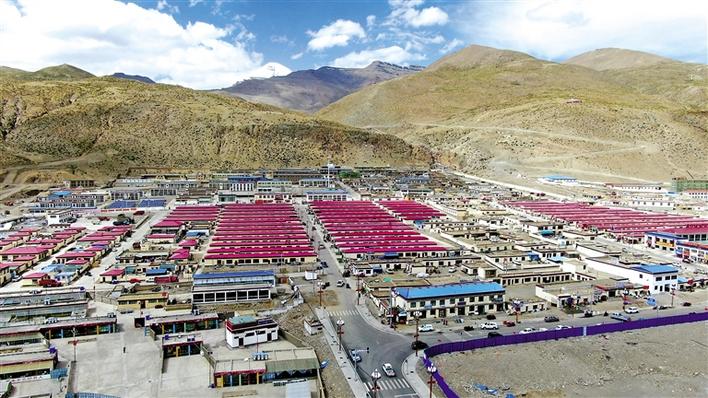 在這座現(xiàn)代化的小區(qū)里,一排排黃色的藏式民居整齊劃一,迎風招展的五星紅旗格外醒目,小區(qū)周邊學(xué)校、醫(yī)院、農(nóng)貿(mào)市場等配套設(shè)施一應(yīng)俱全。沐浴著和煦的陽光,孩子們在巷子里奔跑嬉鬧,老人們圍攏在一起拉家常。