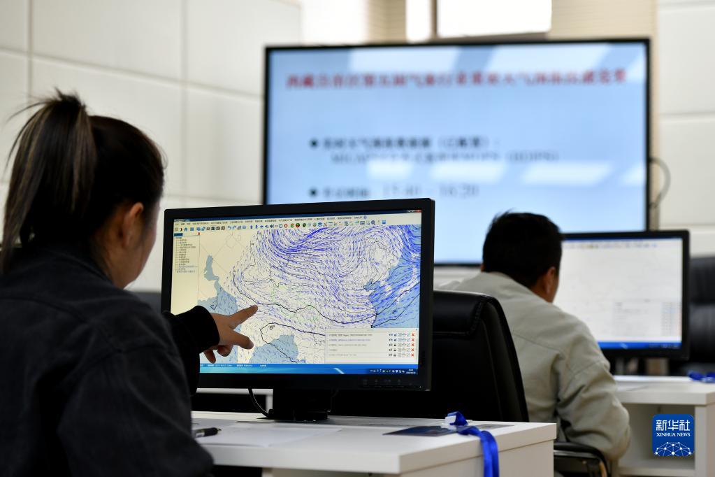 2019年10月,西藏自治區(qū)第五屆氣象行業(yè)重要天氣預(yù)報(bào)技能競賽在拉薩舉行。圖為參賽選手在實(shí)時(shí)天氣預(yù)報(bào)考場內(nèi)比賽。新華社記者 李鑫 攝
