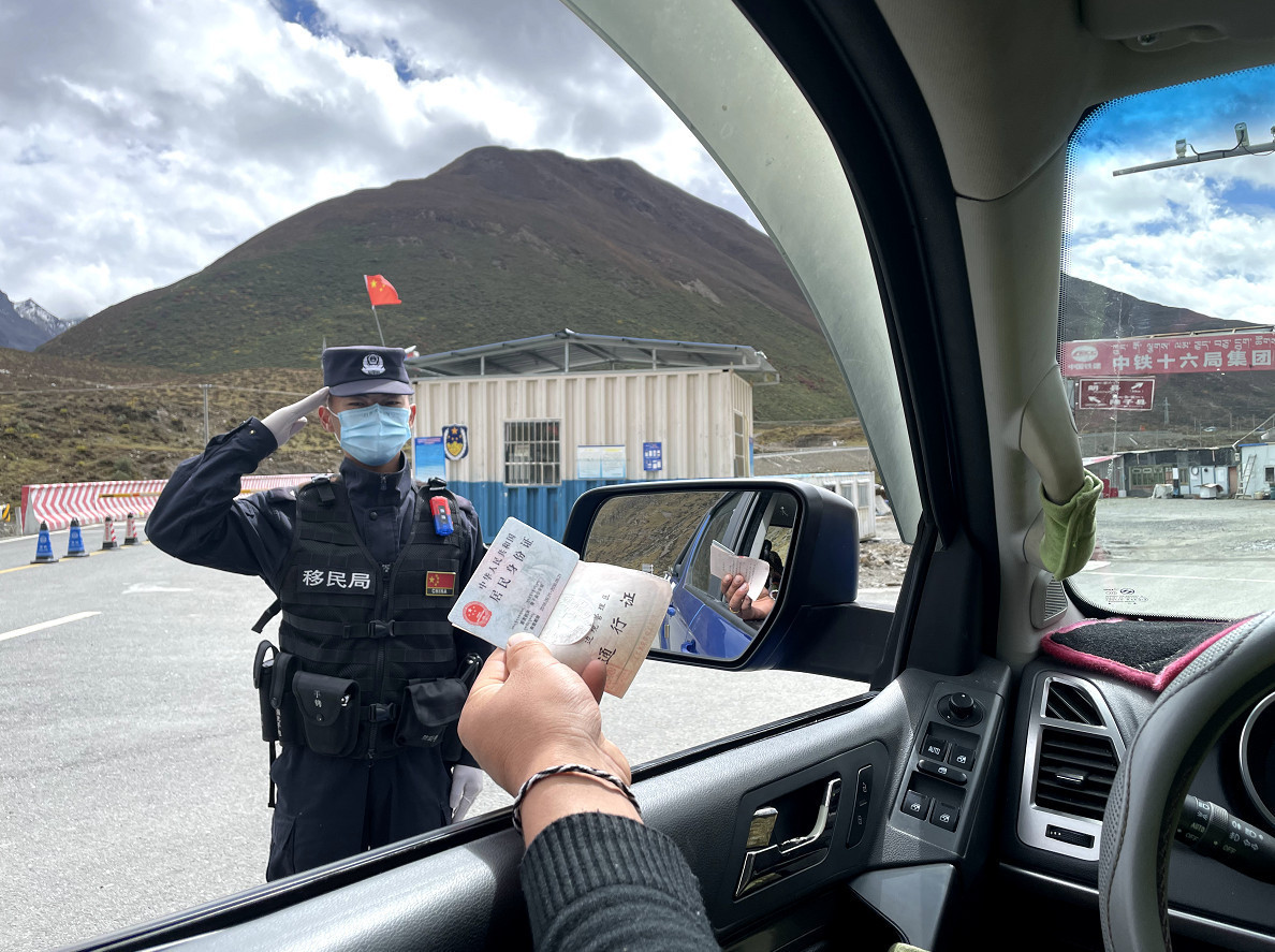 圖為曲桑邊境檢查站國慶期間堅守崗位 鐘鑫 攝