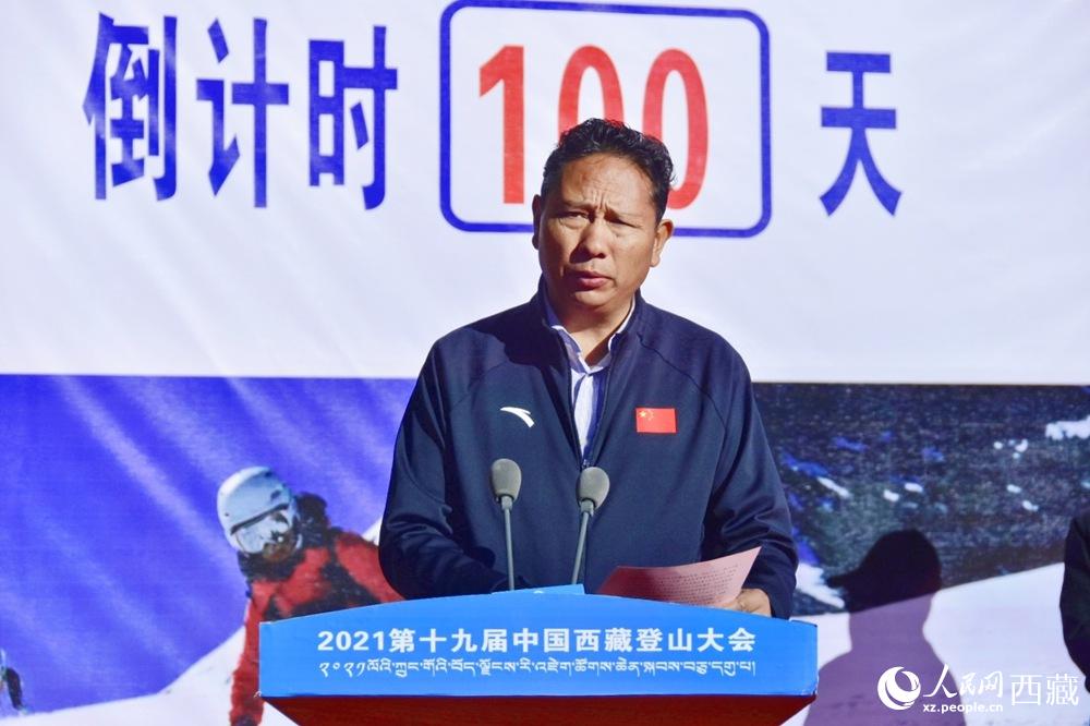 西藏自治區(qū)體育局局長尼瑪次仁致辭。人民網(wǎng) 李海霞攝