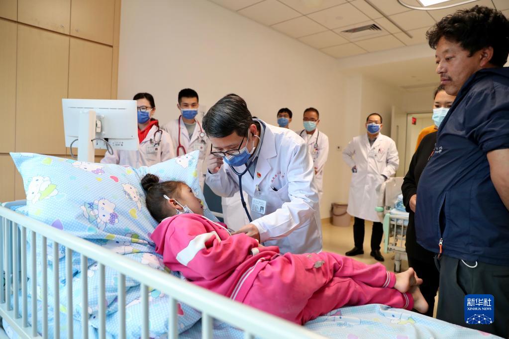 11月25日,在福建省兒童醫(yī)院病房,醫(yī)生在檢查先心病患兒次仁擁措的康復(fù)情況。新華社記者 姜克紅 攝