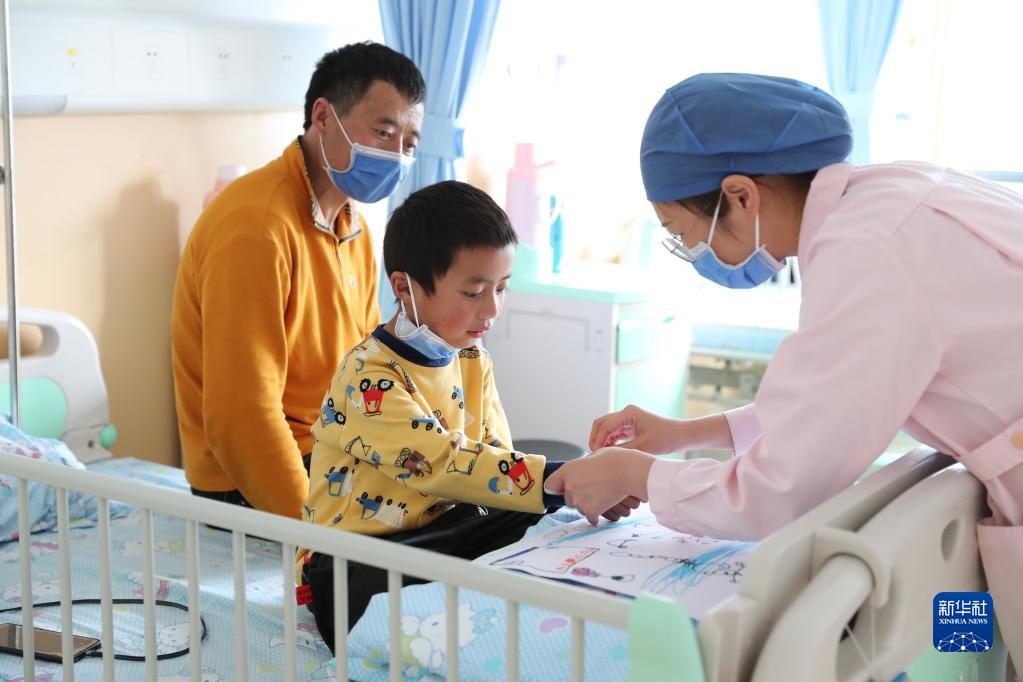 11月25日,在福建省兒童醫(yī)院病房,護(hù)士在為康復(fù)中的先心病患兒次仁扎西進(jìn)行日常護(hù)理。新華社記者 姜克紅 攝