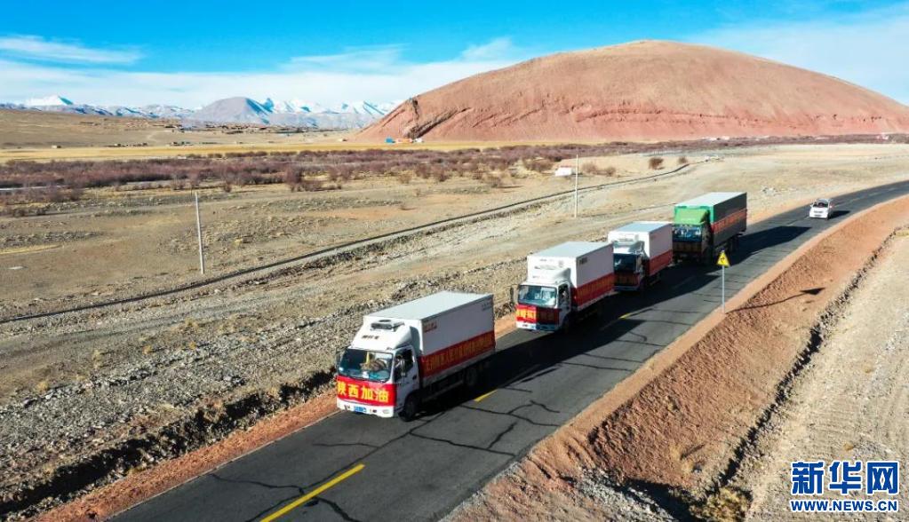 1月7日上午,4輛披著“陜西加油”橫幅的貨車滿載著防瘟香囊、鮮羊肉、礦泉水等援助物資,從西藏阿里地區(qū)發(fā)車駛向陜西省,為三秦大地送去雪域高原的祝福。