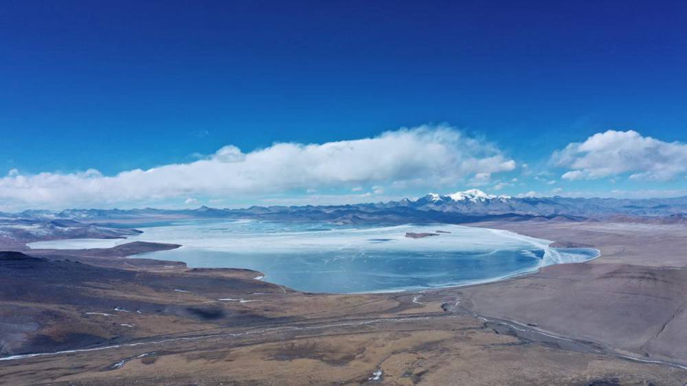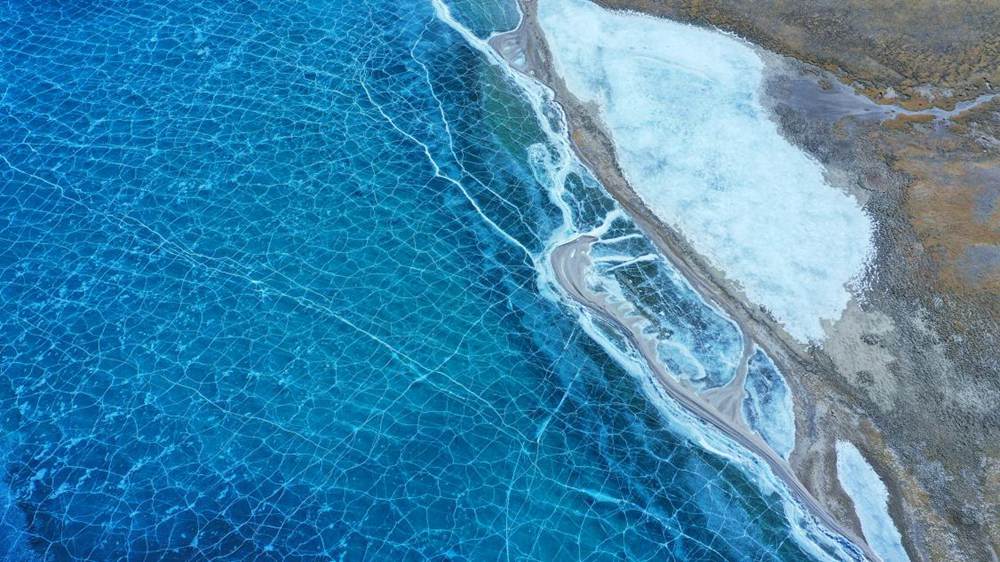 位于西藏山南市洛扎縣和浪卡子縣交界處的普莫雍錯,是喜馬拉雅山脈間的一個咸水湖,湖面海拔5070m。冬季的普莫雍錯湖面會結冰,冰面通透可見湖底,在陽光的照射下,呈現(xiàn)出動人心魄的藍。