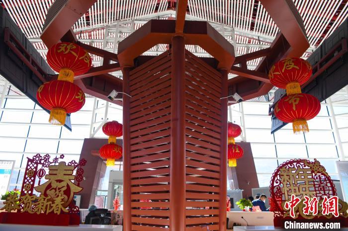 圖為拉薩貢嘎機(jī)場大廳年味裝扮迎接春節(jié)。貢嘎來松 攝