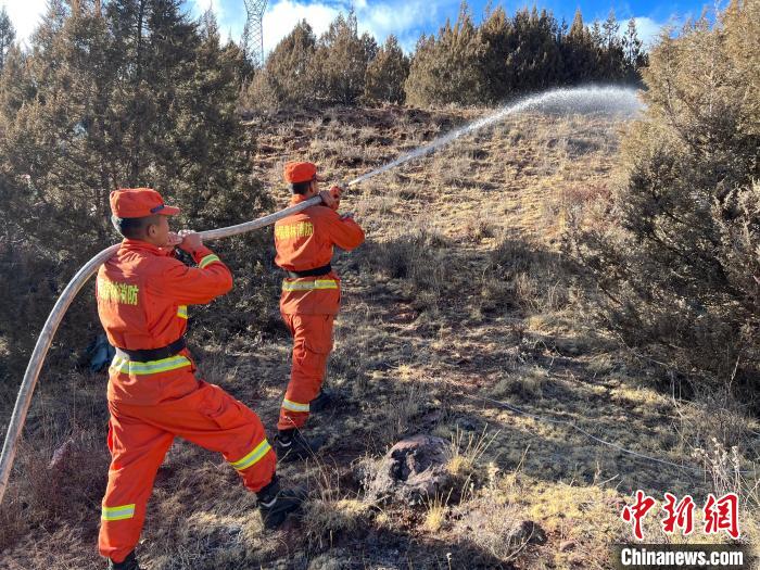 圖為消防指戰(zhàn)員架設(shè)水源地。江達(dá)縣森林消防中隊(duì)貢覺駐防分隊(duì) 供圖