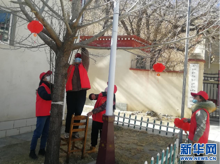 1月28日,志愿者在養(yǎng)老院掛燈籠。(圖片由白朗縣婦女聯(lián)合委員會提供)