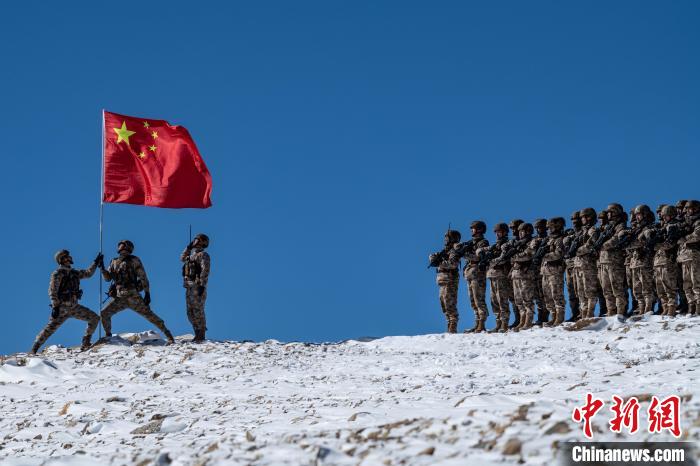 春節(jié),任務分隊官兵登上海拔5300多米的雪山之巔,舉行特別的升國旗儀式。望著高高飄揚的五星紅旗,官兵們目光堅定,向國旗敬禮,唱響國歌。身在邊關,守在一線,住在大山,任務官兵表示,一定要像釘子一樣,牢牢釘在祖國的邊防線上,邊關有我在,請祖國放心。