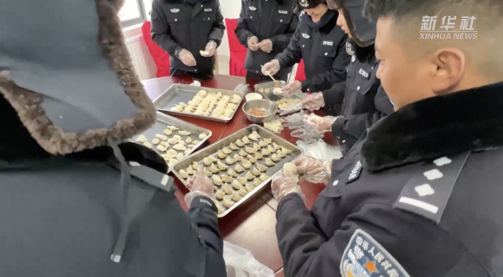 普瑪江塘邊境派出所的民警們?yōu)榱擞有履辏黄鹪诤0巫罡叩泥l(xiāng)包餃子,感受著節(jié)日里的團圓氛圍。