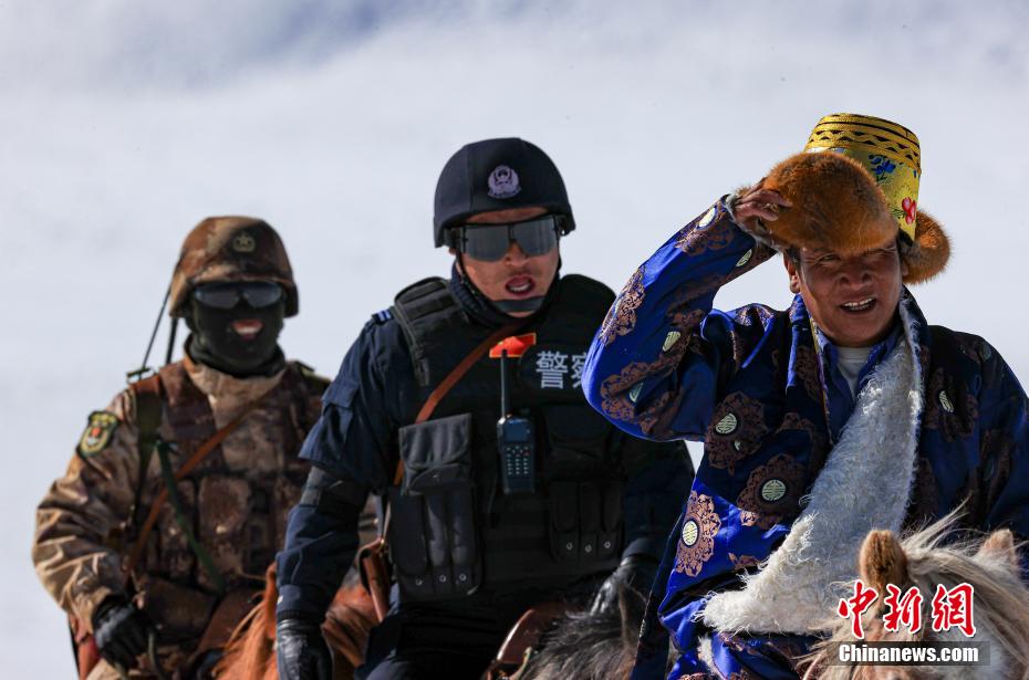1月31日,西藏阿里高原氣溫驟降至零下30攝氏度,駐守在“生命禁區(qū)”的阿里軍分區(qū)某邊防團聯(lián)合駐地政府、公安一同,前往海拔5000多米的某山口執(zhí)行軍警民聯(lián)合巡邏任務(wù)。巡邏分隊不畏嚴(yán)寒缺氧,踏雪巡邏,守衛(wèi)著邊境的安寧。用特殊的方式,迎接新春的到來。劉曉東 攝