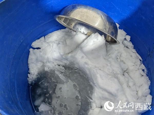 沒有水的日子里,囤雪是常規(guī)操作?!耙煌把┑糜靡惶鞎r間才能化開?;┻€有技巧呢,桶里必須預留部分水,再放到爐邊才行?!彪m然水管從山下接到了哨所,但冬季氣溫降到零下幾十度,水管結冰,化雪取水的傳統(tǒng)依然不能丟?!跋匆伦鲲堄玫亩际茄┧?,還是要珍惜?!眻嚎谏谒嚅L文盛高笑著說。