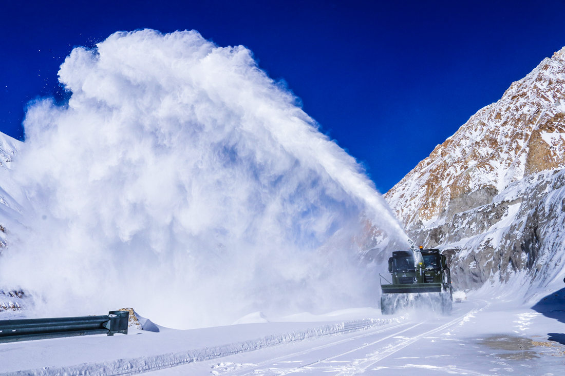 因?yàn)?zāi)害現(xiàn)場(chǎng)地處平均海拔4000多米以上海拔,持續(xù)降雪不斷,加之氣溫低至零下20多攝氏度,給整個(gè)道路搶通工作帶來了不少難度。為盡快清理路面積雪搶通道路,武警官兵采取“人歇機(jī)不停、分段搶通、先通后拓”的方法進(jìn)行全力搶通,克服了高寒缺氧及紫外線強(qiáng)烈等重重困難。