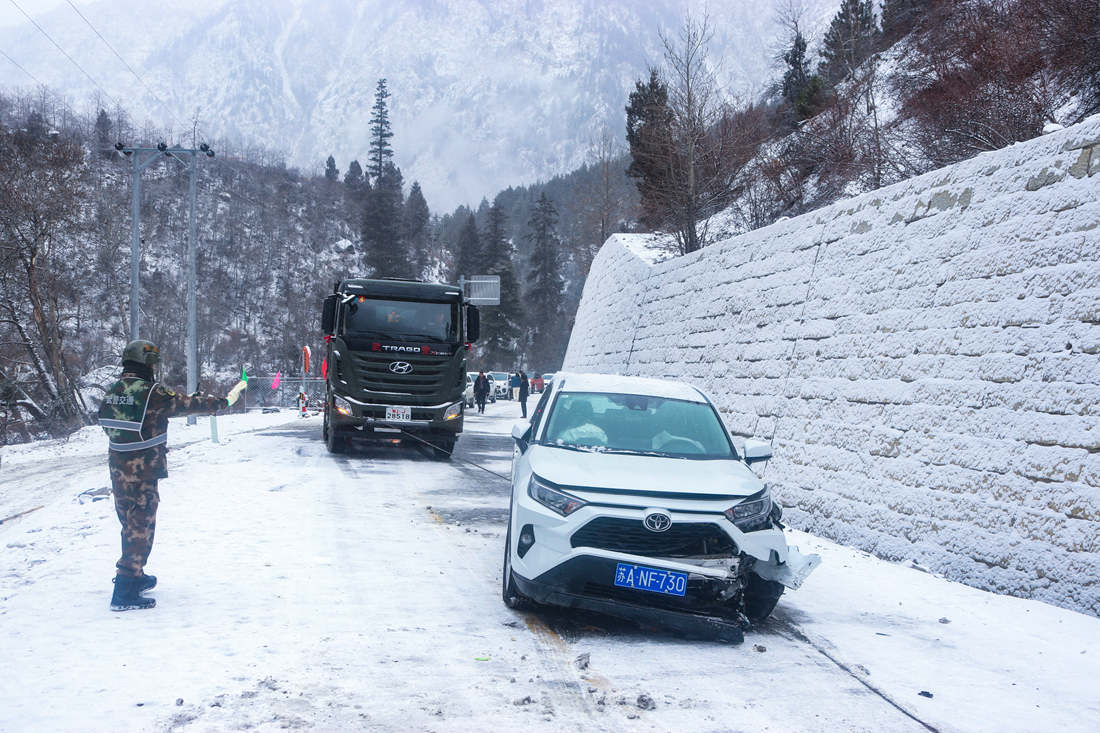 截止2月6日12時(shí)30分,經(jīng)過武警官兵連續(xù)4天的艱苦戰(zhàn)斗,因降雪受阻的川藏線和新藏線已恢復(fù)道路通行,受阻滯留的車輛人員,在武警官兵的指揮下全部安全順利通過。目前,武警官兵還在持續(xù)對(duì)部分背陰結(jié)冰嚴(yán)重路段進(jìn)行破冰處理。